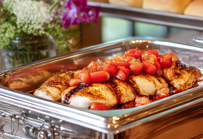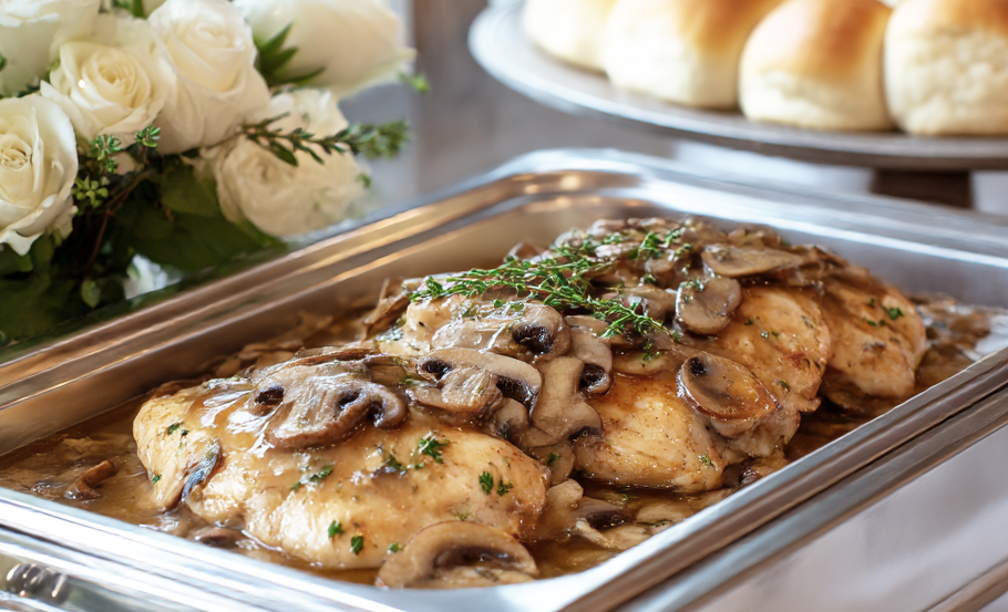 Celebrate twenty-five years of memories with a menu that’s relaxed, flavorful, and full of variety. Guests can enjoy a mix of classics like herb-roasted pork, chicken Marsala, broiled tilapia, wild rice, and grilled seasonal vegetables, along with a fresh garden salad and warm dinner rolls. The celebration ends on a sweet note with New York–style cheesecake topped with strawberries. Condiments and upscale paper products are included for an easy, comfortable, and enjoyable anniversary gathering.