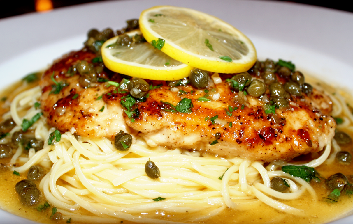 boneless breast of chicken sautéed with lemon, capers, and white wineChicken Carmella