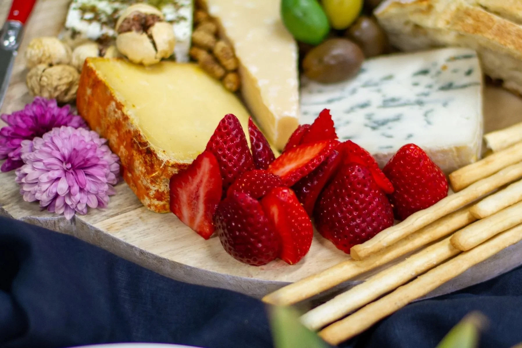 Imported Gourmet Cheese Tray: A Variety of Imported Cheeses with Fresh Berries