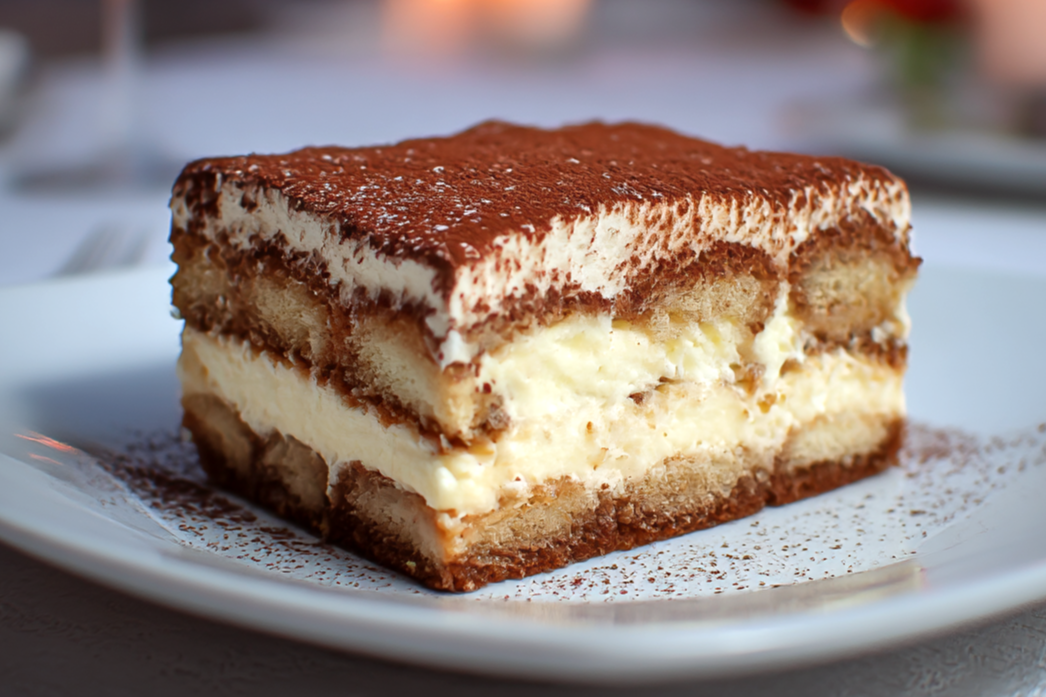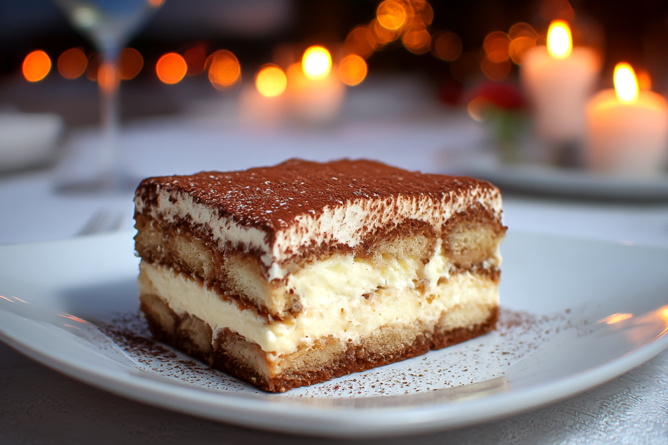 An Italian specialty made with layers of espresso-soaked ladyfingers and mascarpone cream, finished with a dusting of cocoa. -