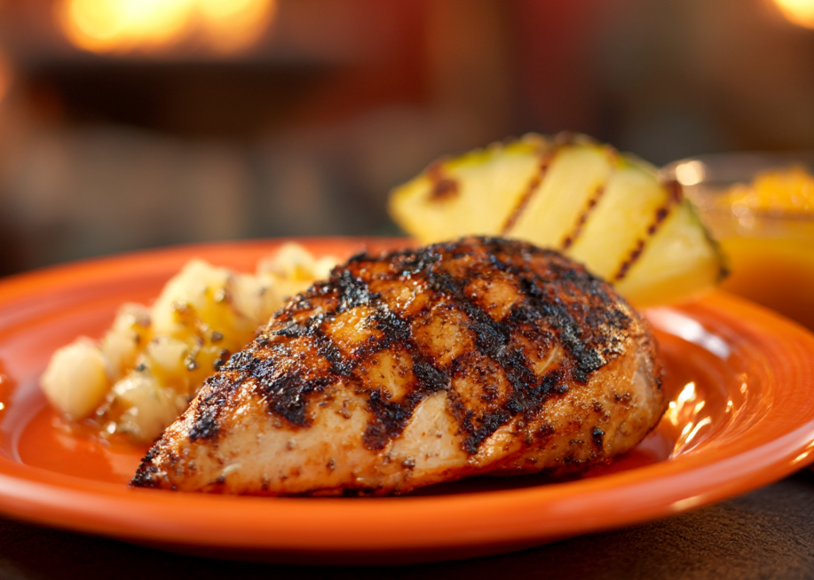 Jerk chicken breast and thighs rubbed with our own jerk seasonings and topped with mango chutney
