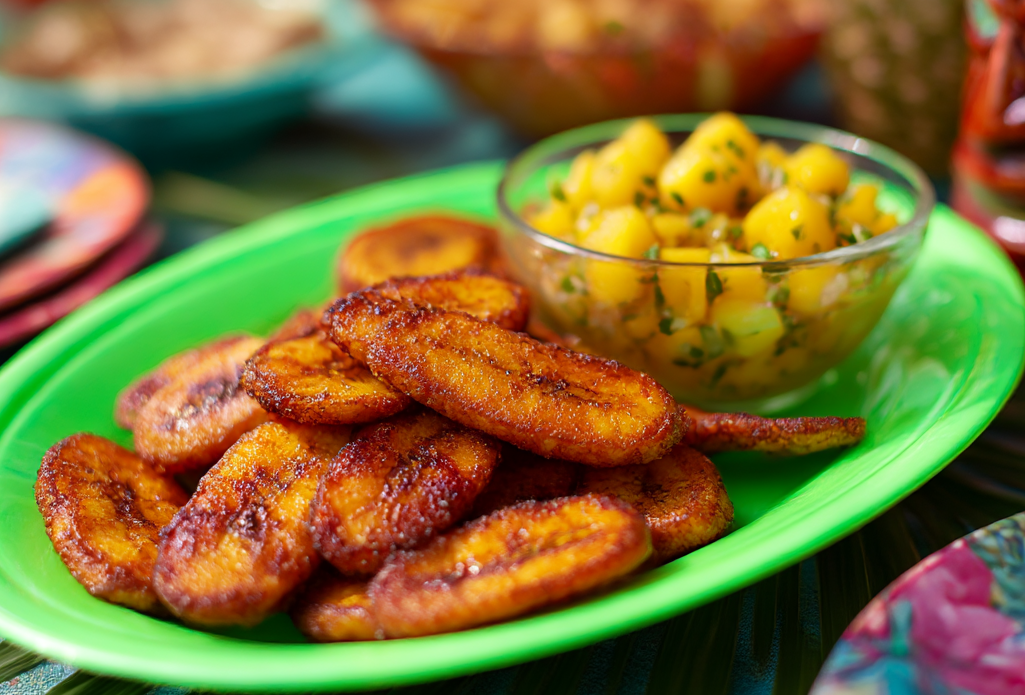 Fried plantains with a light touch of sea salt, served with mango and pineapple salsa